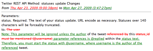 parameter to the id of another tweet would only work if the name of the author of that tweet (@username) was at the beginning of the post—even though the Twitter API documentation said that @username could be anywhere in your tweet.