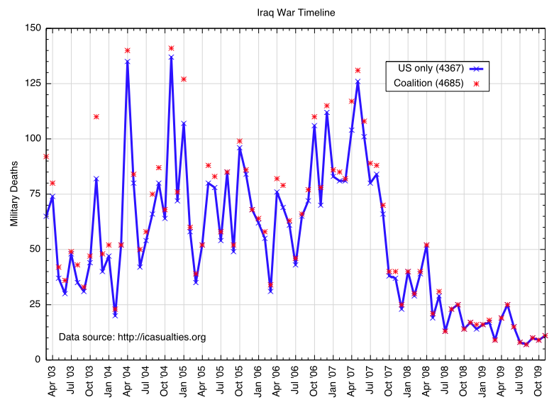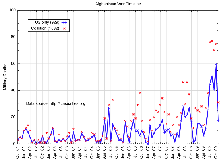 November was a relatively good month. Military deaths underwent a big drop in Afghanistan and stayed low in Iraq.