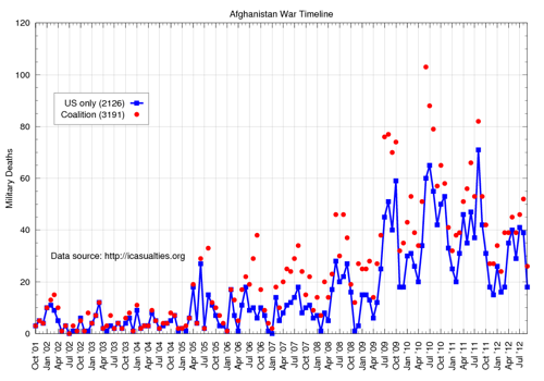 I don’t know how much of this month’s drop in US and coalition military deaths can be attributed to the end of the surge, but it’s welcome news, whatever the cause.