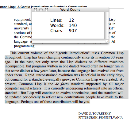 The result, here counting the words in a paragraph of Touretzky’s Gentle Introduction to Symbolic Computing , looks like this