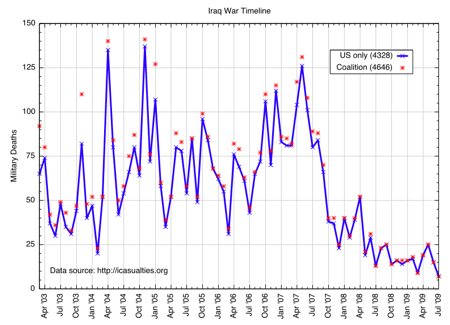 July—the first month after the redeployment to bases—had the fewest US and coalition military fatalities of any month since the Iraq war started.