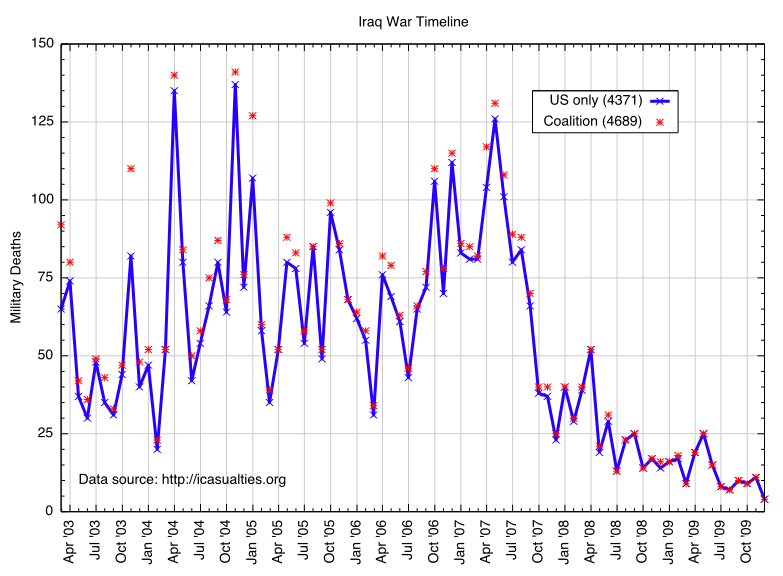 In Iraq, the number of US and coalition military deaths in December were the lowest in its 6½-year history.