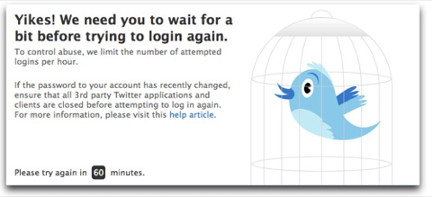 (It would be nice if Tweetie could distinguish between an incorrect username/password pair and Twitter exile; its error message was distinctly unhelpful. I’d send an angry tweet about this to @atebits, but…)