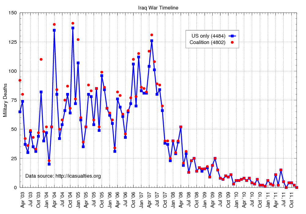 So I guess we really are done in Iraq. Nearly 4,500 US military lives lost, over 300 more from our coalition partners. And to what end? We invaded a country that had not attacked us and deposed a leader who was no threat to us or our allies. We made ourselves look foolish, dishonest, and belligerent to the rest of the world—more foolish, more dishonest, and more belligerent, if you want to be cynical about it.