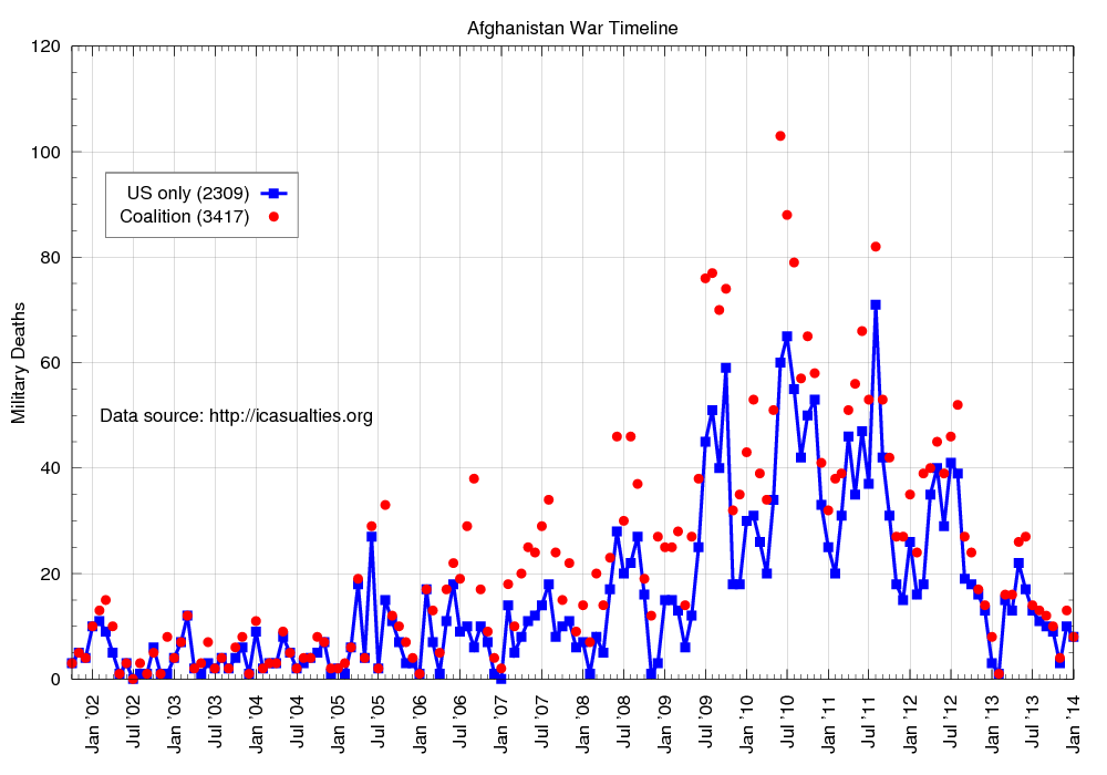 First, via Kevin Drum, there’s this report from Pew Research, which tracks the changes in US attitudes toward the wars in Afghanistan and Iraq. I was struck by the same thing Kevin was: that only 35–40% of Americans now believe the war in Iraq was a success and that there’s virtually no difference between Republicans, Democrats, and Independents in this belief. I’d feel better about this if I thought it would have any bearing on attitudes for the next war.